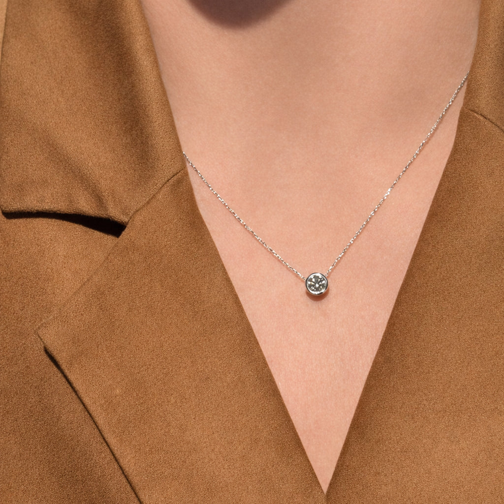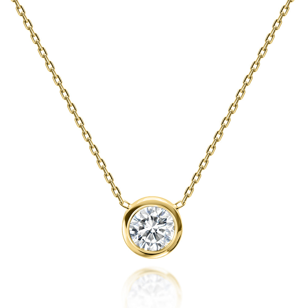 תליון יהלום מודרני ועדין בשיבוץ כוס המעניק לתליון מראה אלגנטי וקלאסי.  מגיע גם בזהב לבן ורוד וגם בזהב צהוב.