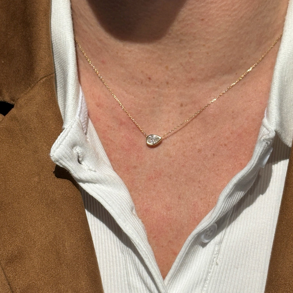 תליון יהלום מודרני ועדין בשיבוץ כוס המעניק לתליון מראה אלגנטי וקלאסי.  מגיע גם בזהב לבן ורוד וגם בזהב צהוב.